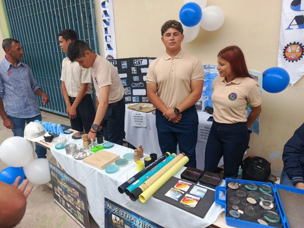 Formación que se lleva a cabo de acuerdo a las orientaciones del Gobierno Bolivariano a través del Mincyt, a partir de la cual los futuros técnicos medios podrán manejar con propiedad conceptos complejos de óptica y tecnología aplicada, como lo demostraron en la Feria Empresarial de la ETI. /Prensa Mincyt/CIDATA/Celina Sulbarán.