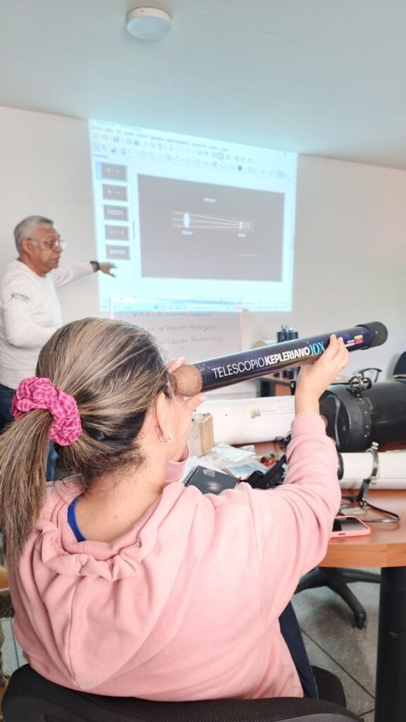 Es importante destacar que la meta de la Fundación CIDATA no es solo informar, es también despertar vocaciones tempranas en niñas, niños y jóvenes estudiantes de los diferentes niveles educativos. Porque, detrás de cada charla, visita a escuela y noche de observación, hay horas de preparación técnica. /Prensa Mincyt/CIDATA/Celina Sulbarán.}